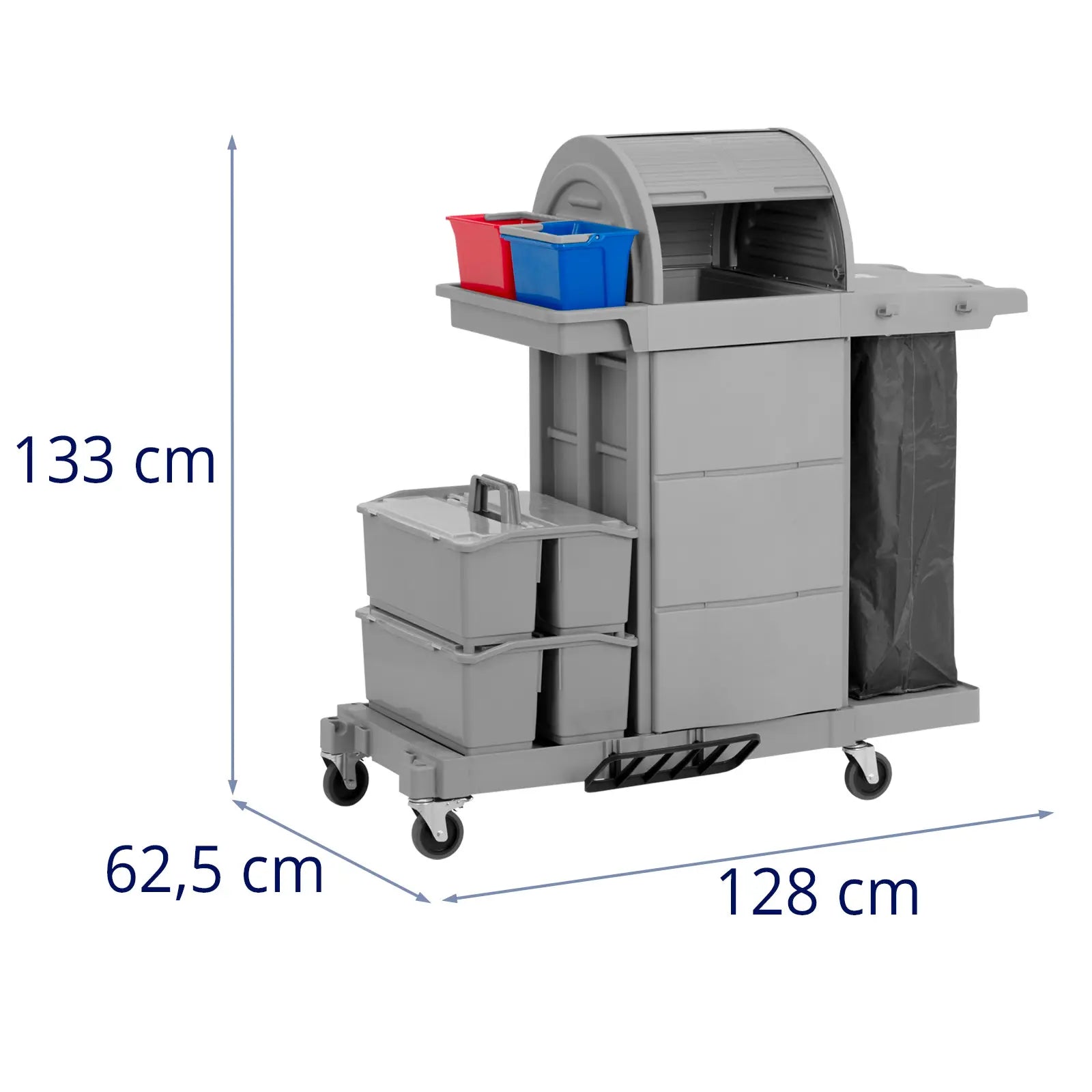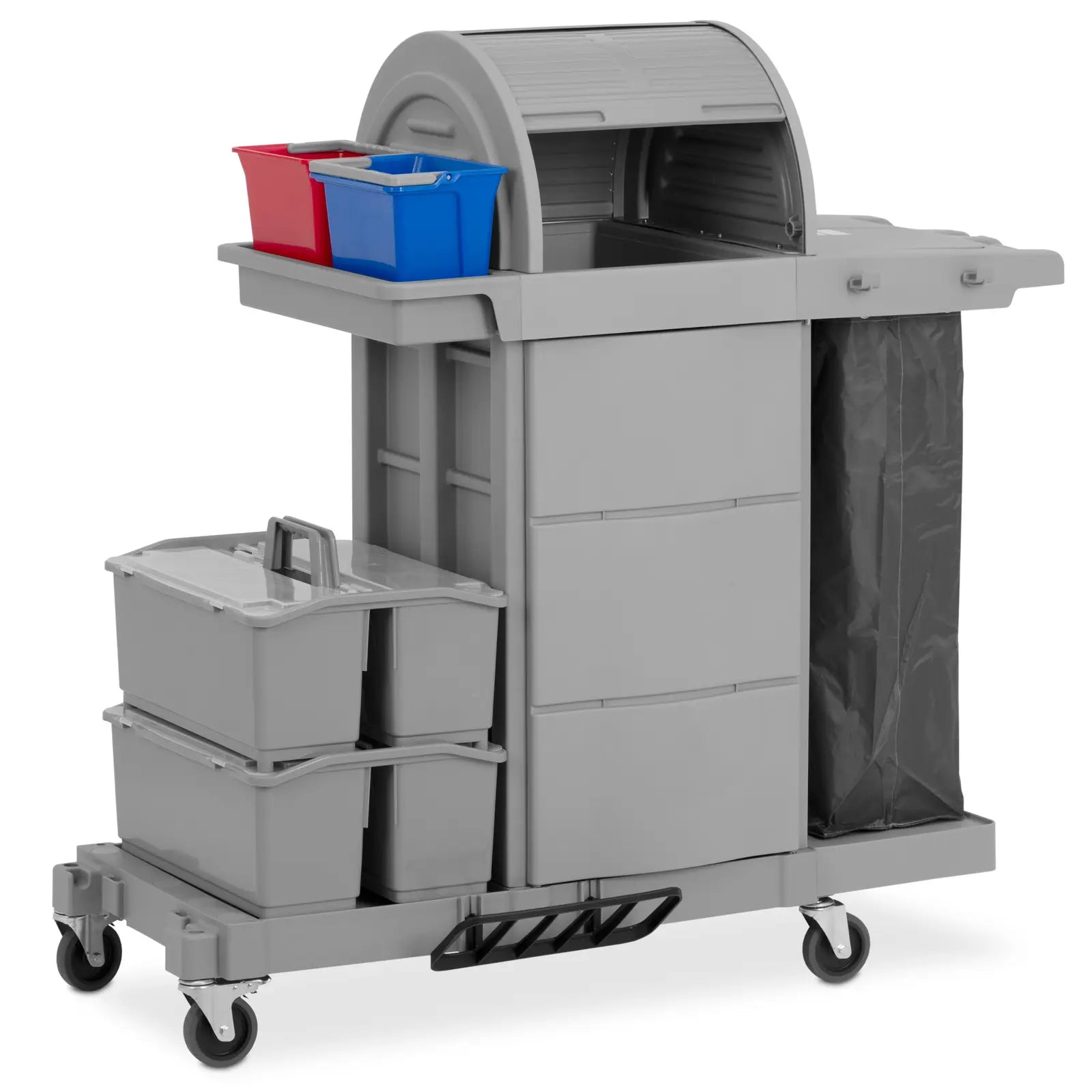 Charriot de nettoyage professionnel avec sac compartiment verrouillable 2 seaux 2 boites doubles plastique gris 14_0008649
