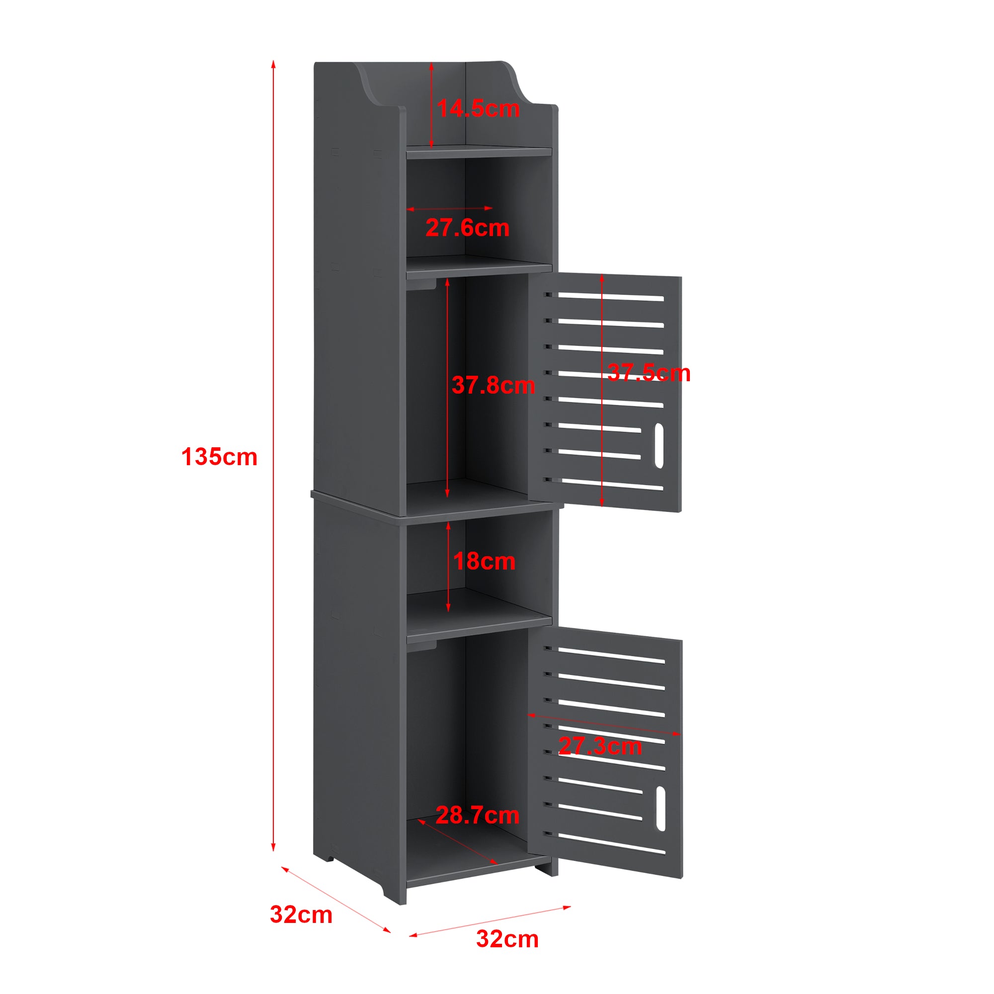 Meuble colonne pour salle de bain meuble de rangement à portes avec plusieurs compartiments de stockage bois composite 135 cm gris 03_0005825