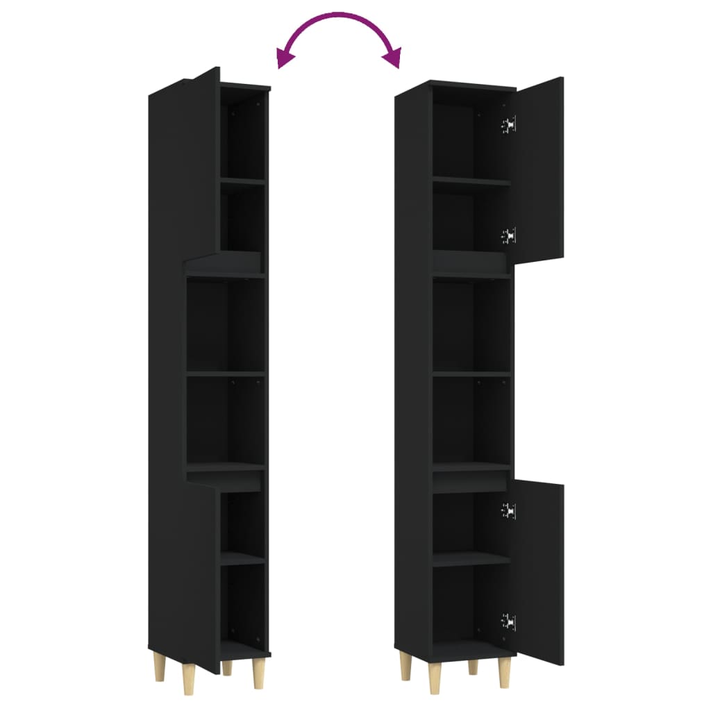 Armoire de salle de bain noir 30 x 30 x 190 cm bois d'ingénierie 02_0006560