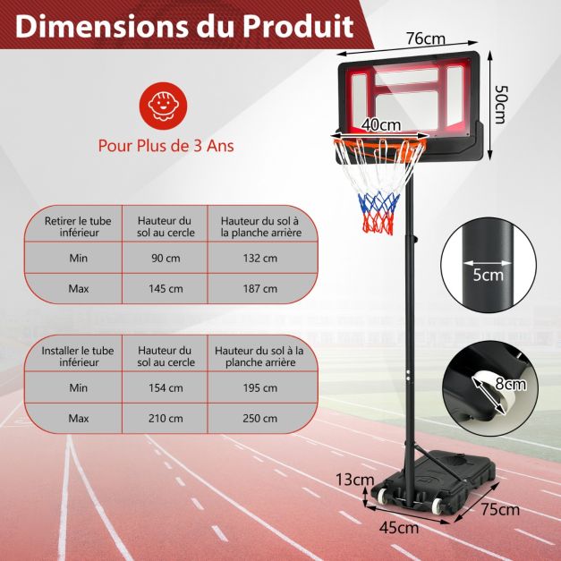 Panier de basket pour enfants jouet de but de basket résistant aux intempéries avec hauteur réglable de 132 à 250 cm 20_0005054