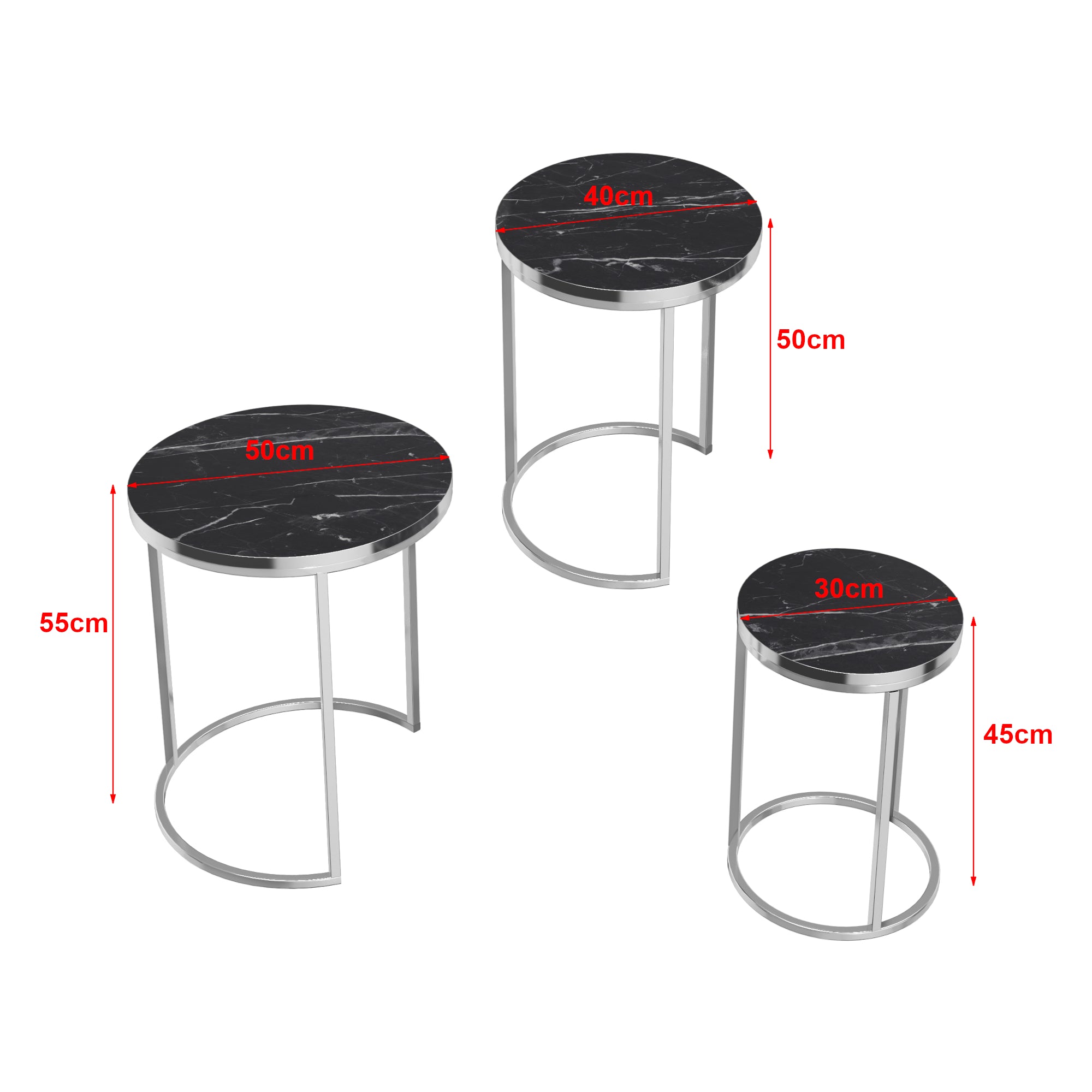 Set de 3 tables d'appoint rondes gigognes marbre noir argent 03_0008378