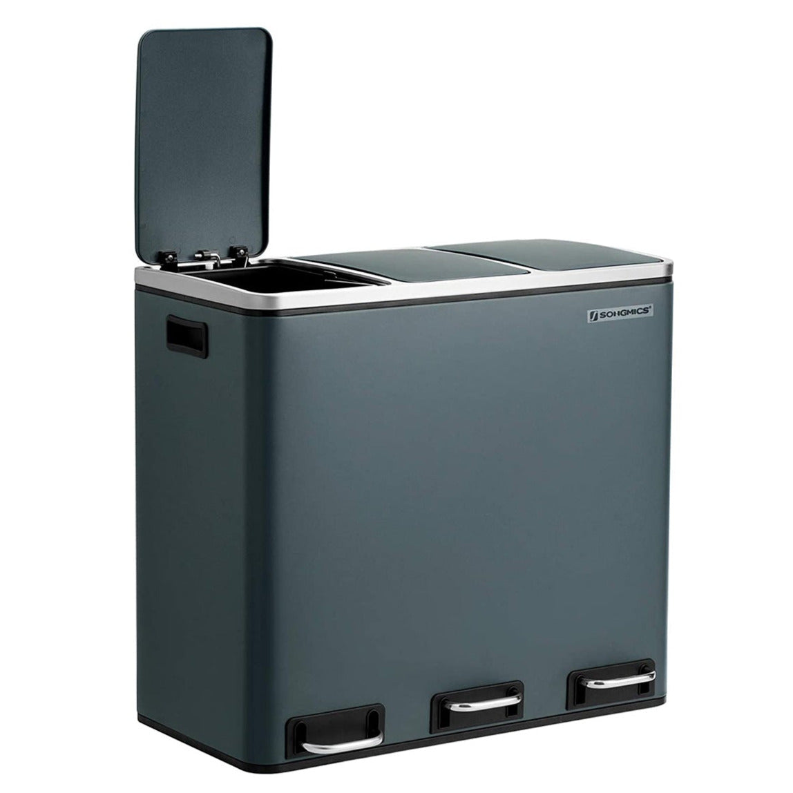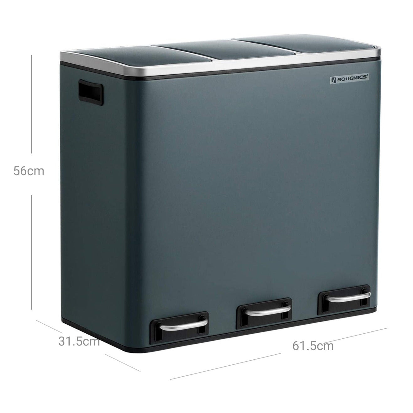 Poubelle de recyclage poubelle de tri 3 x 18 litres 3 compartiments mécanisme tampon pédales couvercle seaux intérieurs en plastique avec poignées gris anthracite 12_0003236