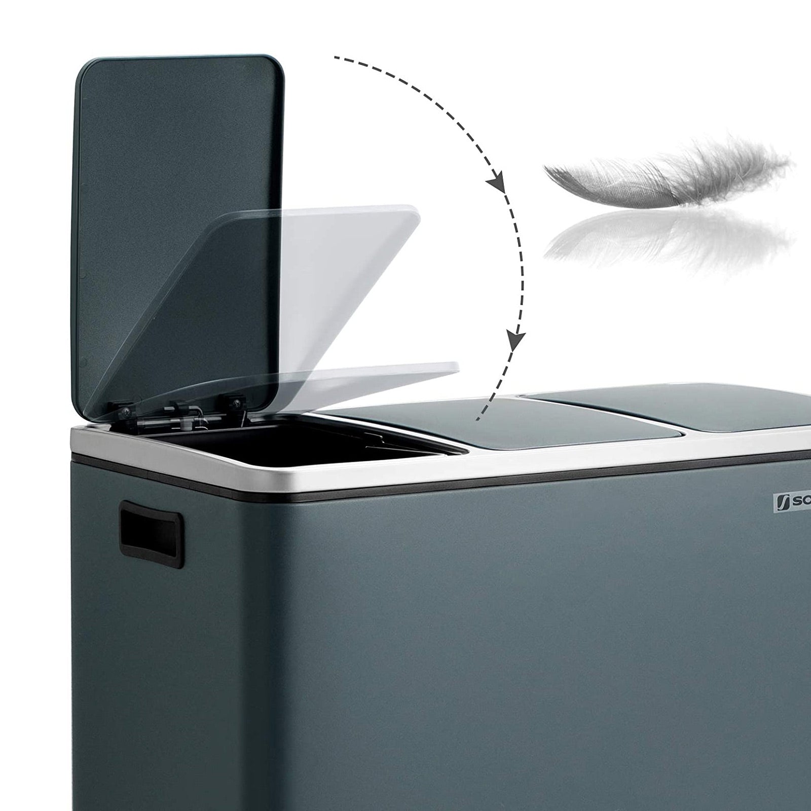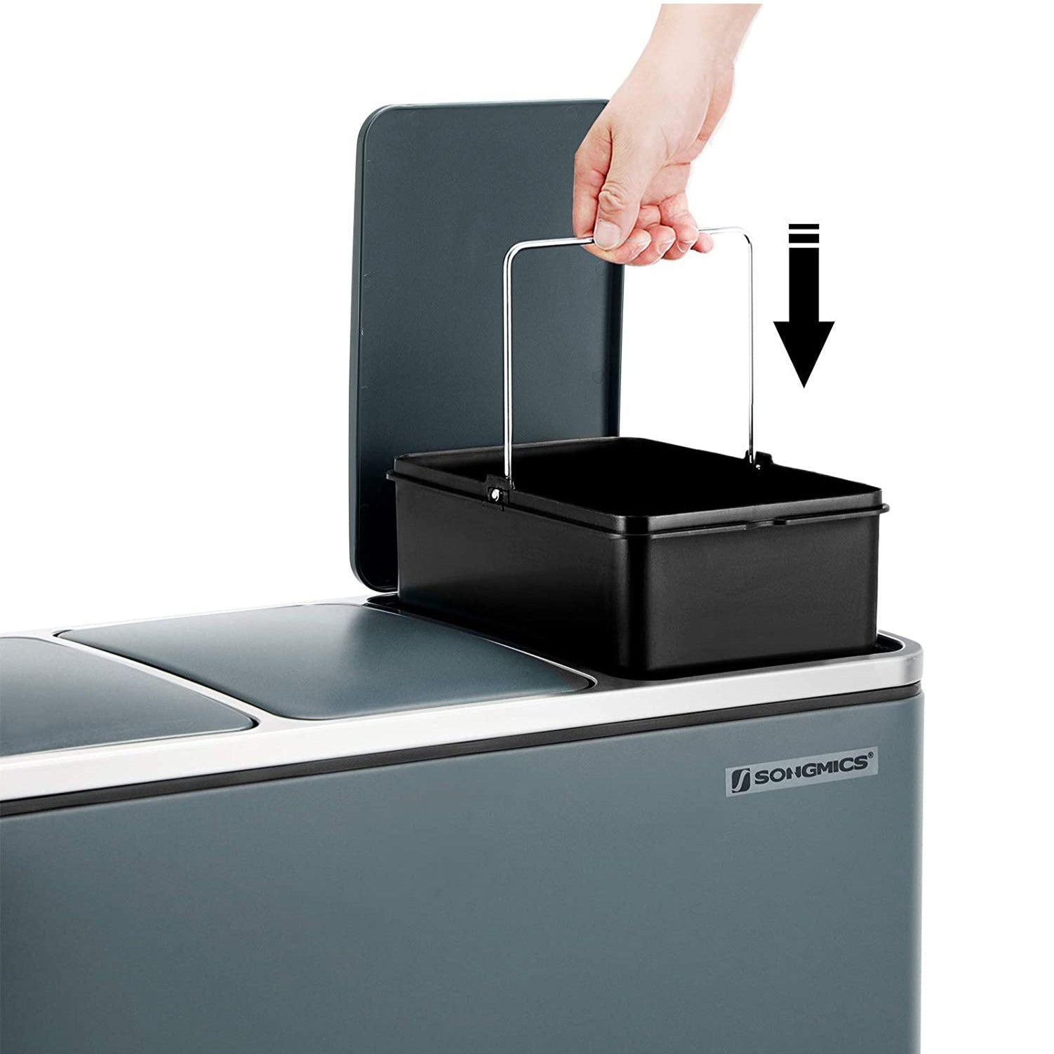 Recycler ? Vraiment pas compliqué ! Avec 3 compartiments côte à côte, vous pouvez trier vos déchets en un rien de temps. Tout ce que vous avez à faire, c'est d'appuyer avec le pieds pour ouvrir les couvercles. Comme ça, vous avez les mains libres pour jeter tout ce que vous souhaitez. Les 3 seaux internes sont munis des poignées pour les sortir et de les vider facilement.