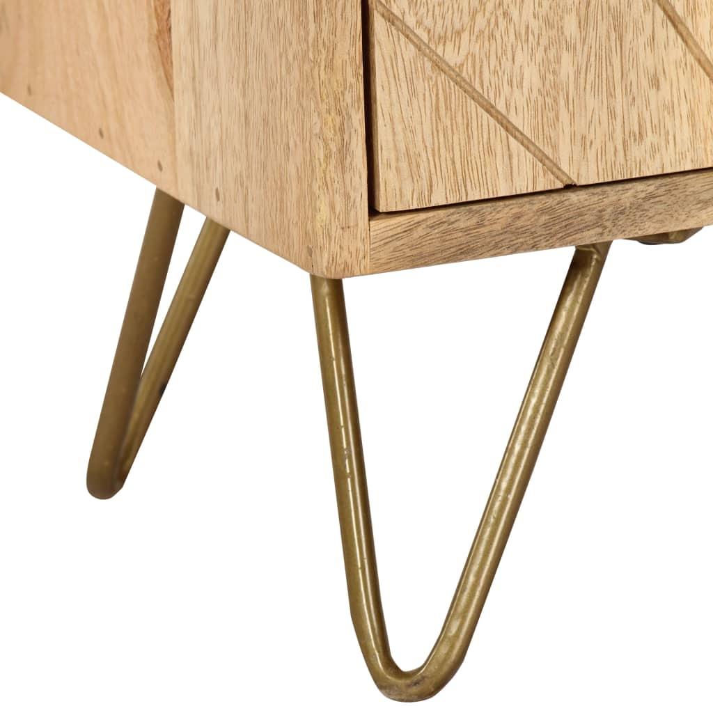 - Matériau : bois de manguier massif avec finition blanchie + pieds en acier