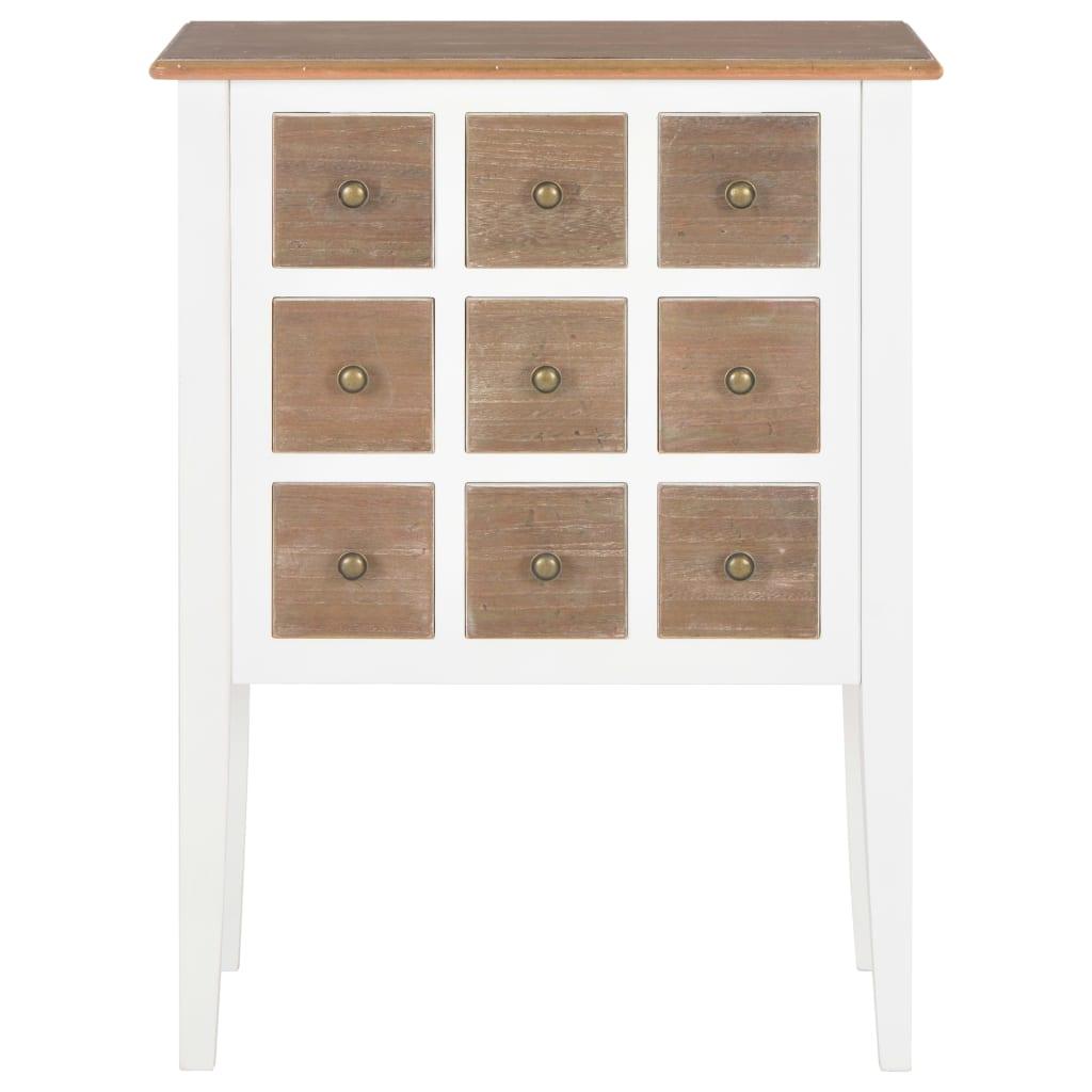 L'armoire en bois possède neuf tiroirs pour un rangement supplémentaire.