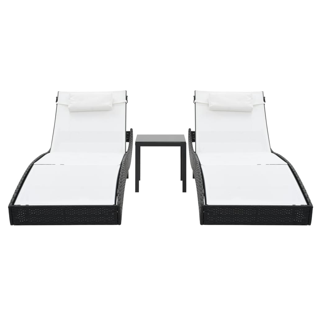 Lot de 2 transats chaise longue bain de soleil lit de jardin terrasse meuble d'extérieur et table résine tressée et textilène noir 02_0012146