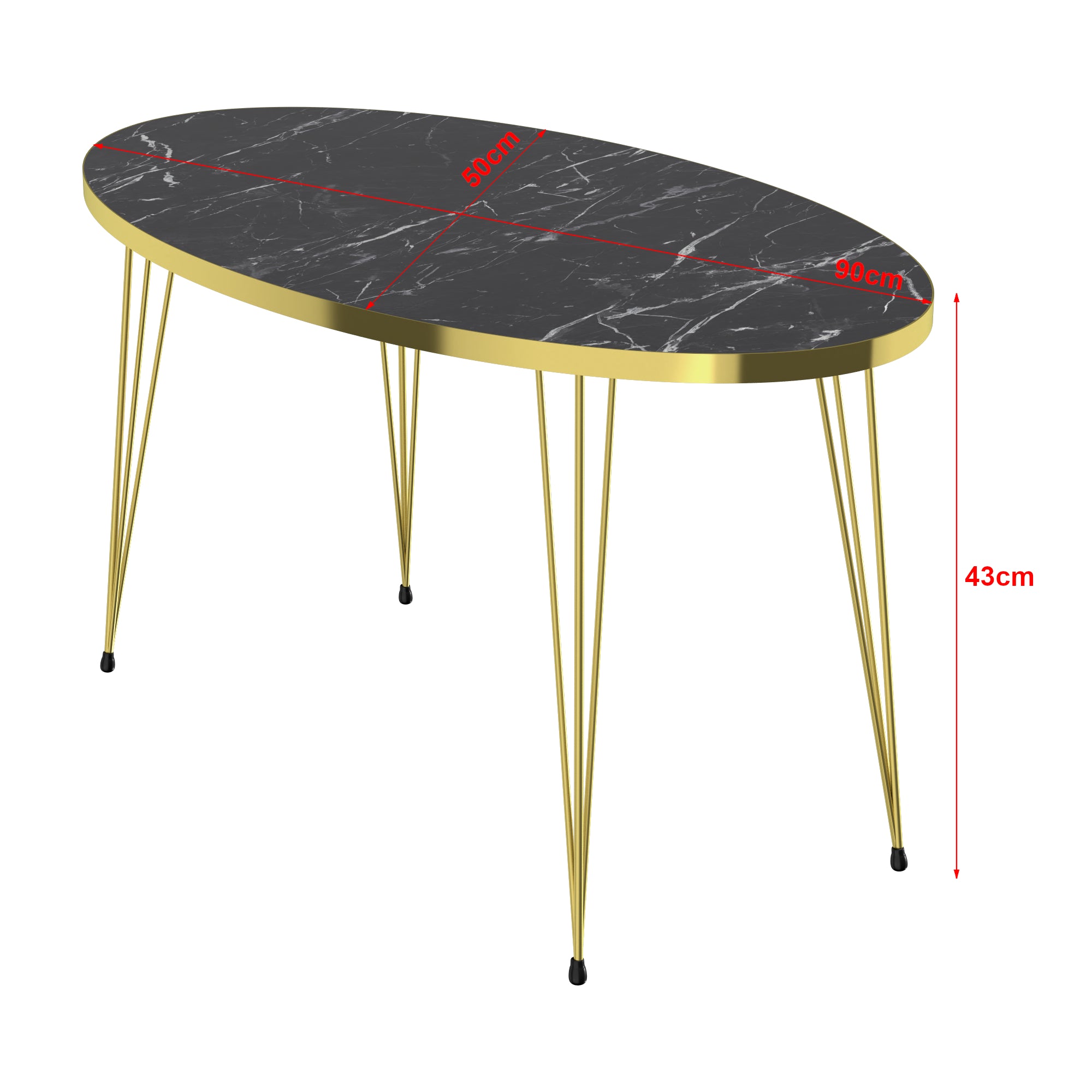 Table basse ovale 43 x 90 x 50 cm marbre noir or 03_0008511