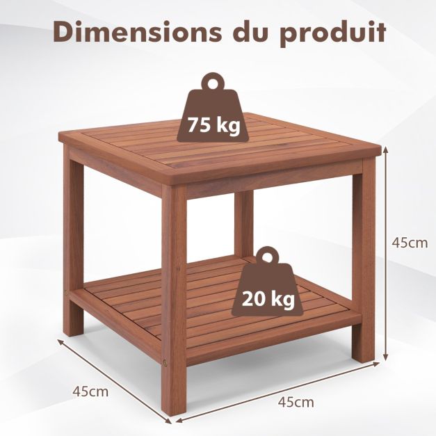 Table d'appoint en bois à 2 niveaux table d'extrémité rectangulaire portable avec plateau à lamelles table basse d'extérieur et d'intérieur 20_0009367