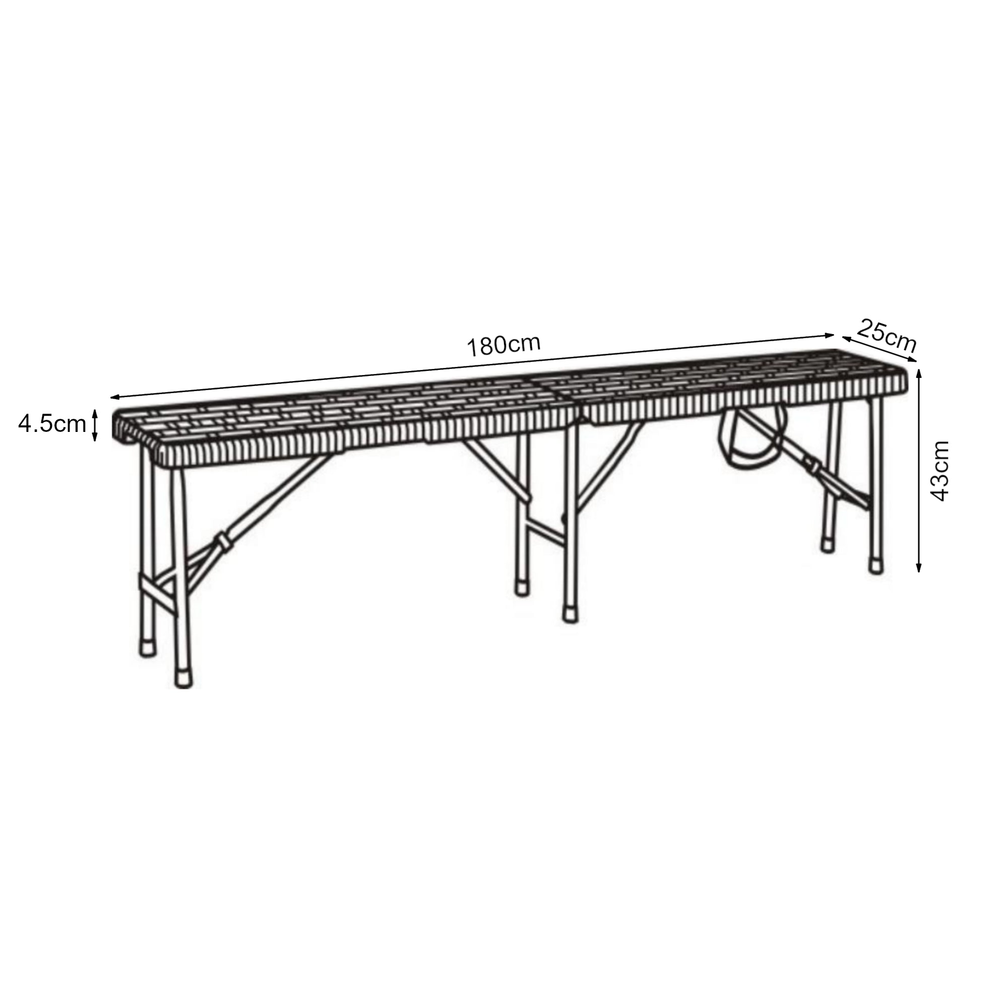 Lot de 2 bancs de camping pliables 180 x 25 x 43 cm effet rotin noir 03_0009600