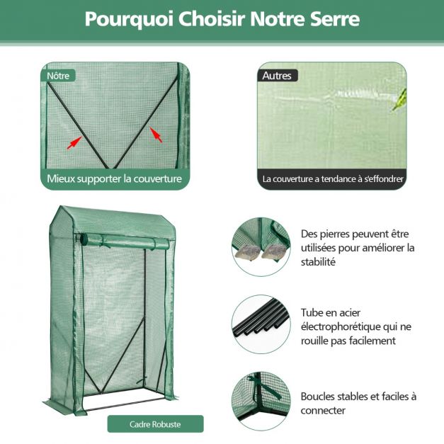 Serre de jardin 100 x 50 x 170 cm avec porte zippée enroulable tube d’acier antirouille et housse de grille en plastique pe 20_0004946