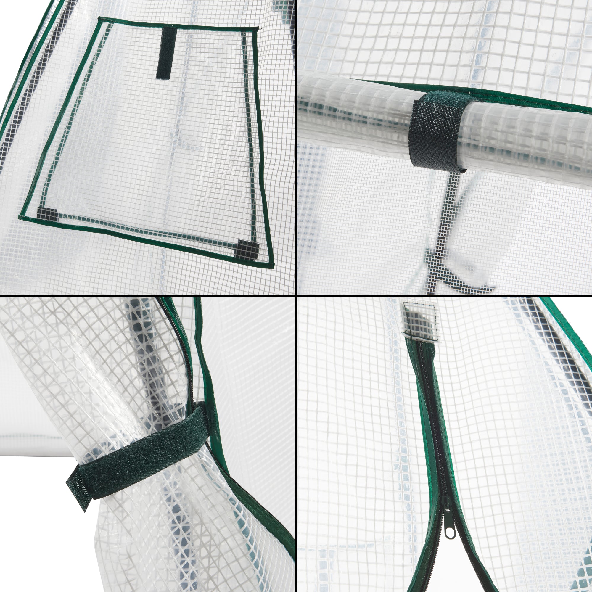 Notre serre de jardin offre une praticité et une polyvalence exceptionnelles, qu'elle soit utilisée sur la terrasse ou dans le jardin. Parfaite pour protéger vos plantes contre le froid, le gel, la neige, la pluie ou les animaux, elle présente un toit en forme de dôme permettant un drainage efficace de l'eau de pluie. Son montage rapide et stable est assuré grâce aux accessoires fournis. Équipée d'une porte à fermeture éclair pour un accès aisé, la serre comporte également une fenêtre avec moustiquaire assurant une ventilation optimale. La bâche résistante à l'usure et la structure en acier garantissent la robustesse et la stabilité de la serre.