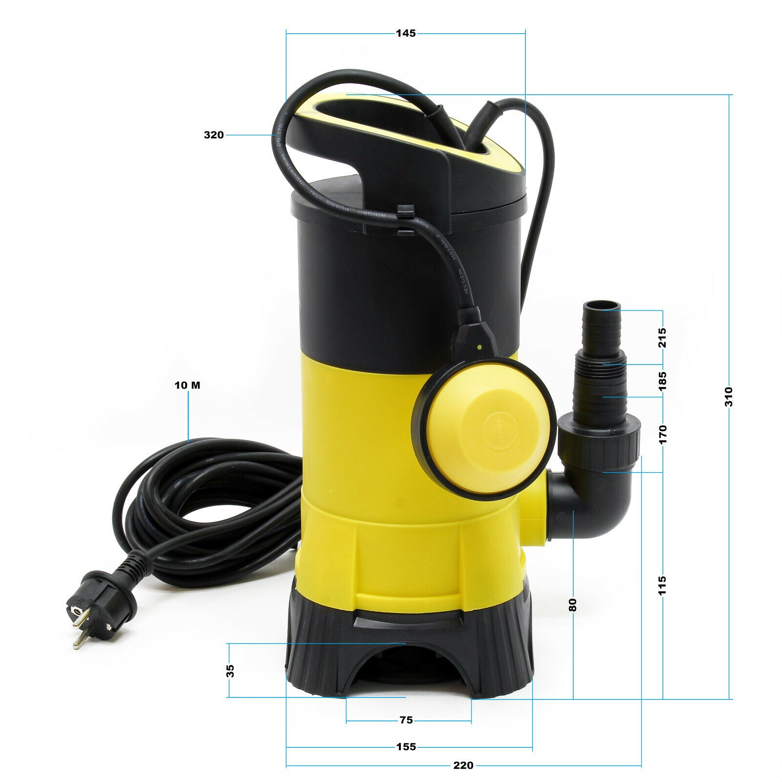 D'une puissance de 400 watts, la pompe peut débiter jusqu'à 7.500 litres d'eau sale par heure à une profondeur d'immersion maximale de 5 mètres.