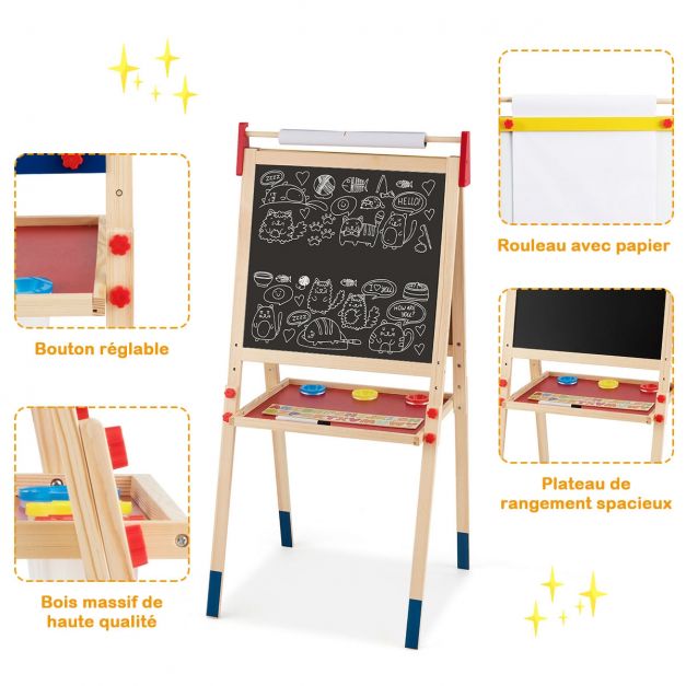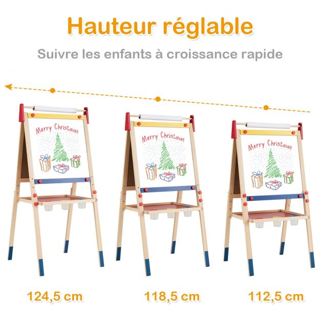3 en 1 chevalet de peintre pour enfants avec rouleau de papier tableau magnétique blanc et noir en bois de pin hauteur réglable 20_0004765