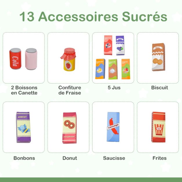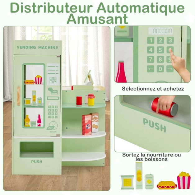 Ensemble de jeu de supermarché en bois autoportant pour enfants tableau noir caisse enregistreuse distributeur automatique pour 3 à 8 ans vert 20_0007129