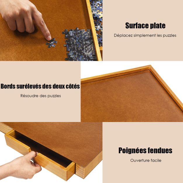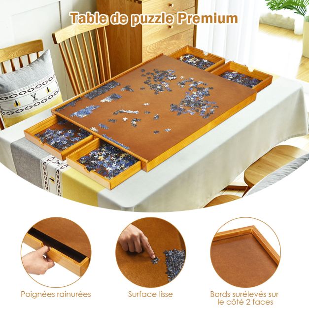 Tableau de puzzle pour 1000 à 1500 pcs table de puzzle 80 x 65 cm 4 tiroirs coulissants latéral en bois naturel 20_0007449