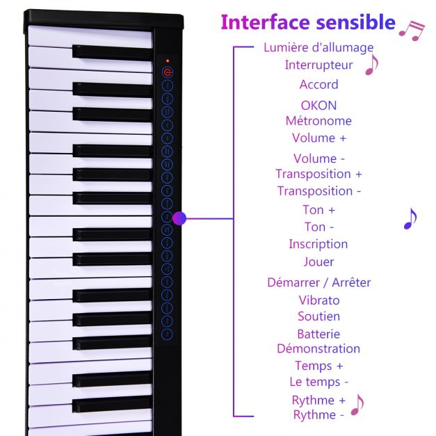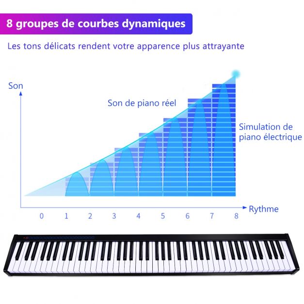 Clavier electrique à 88 touches 128 rythmes 128 notes réglage de la dynamique interface midi / usb avec fonction bluetooth et sac 20_0007111