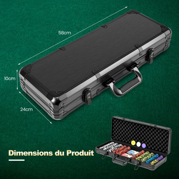 Mallette de 500 jetons de poker texas hold’em de 14 g étui en aluminium jeux de cartes 3 jetons dealer 5 dés pour casino rassemblements noir 20_0007255