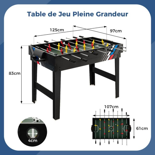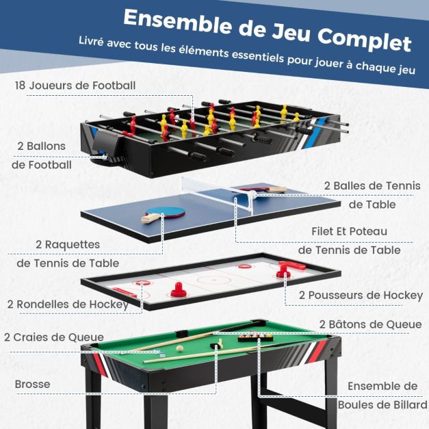 4 en 1 baby-foot avec 18 joueurs & billard et hockey & tennis de table table de jeu empilable avec marqueur manuel jouets 125 x 97 x 83 cm 20_0007596