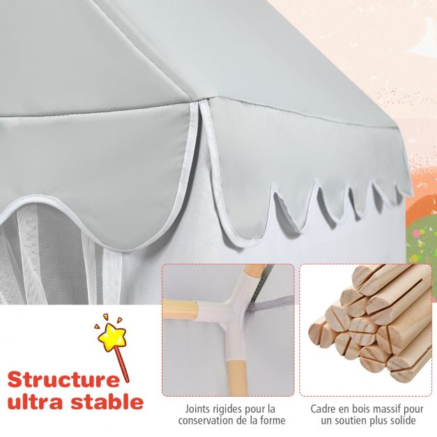 Tente de jeux pour enfants cabane de style princesse en coton cadeau pour garçons et filles gris 20_0006422