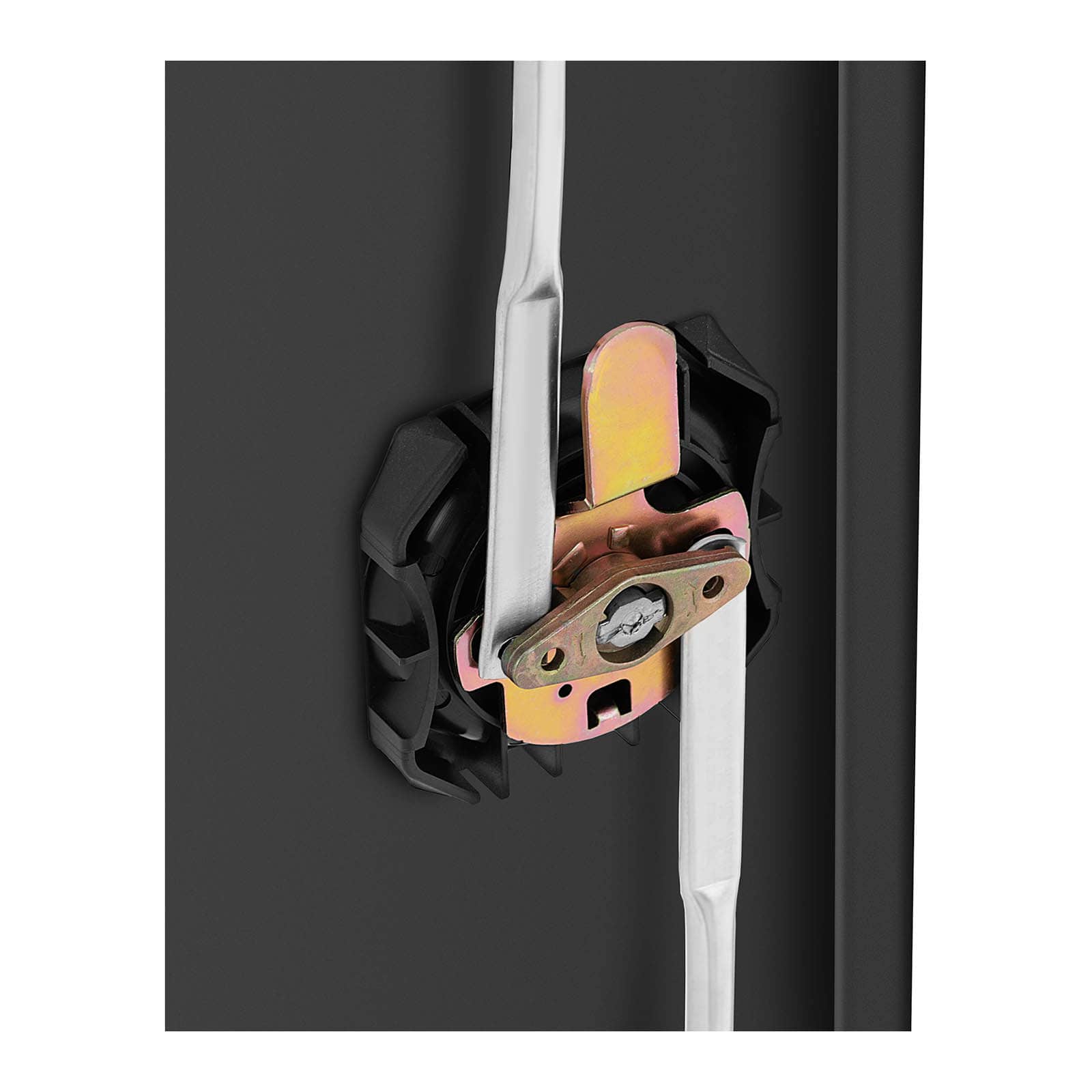 Grâce à sa construction solide, et surtout à sa serrure à barillet mécanique à deux clés, cette armoire en acier constitue un meuble de rangement sûr.