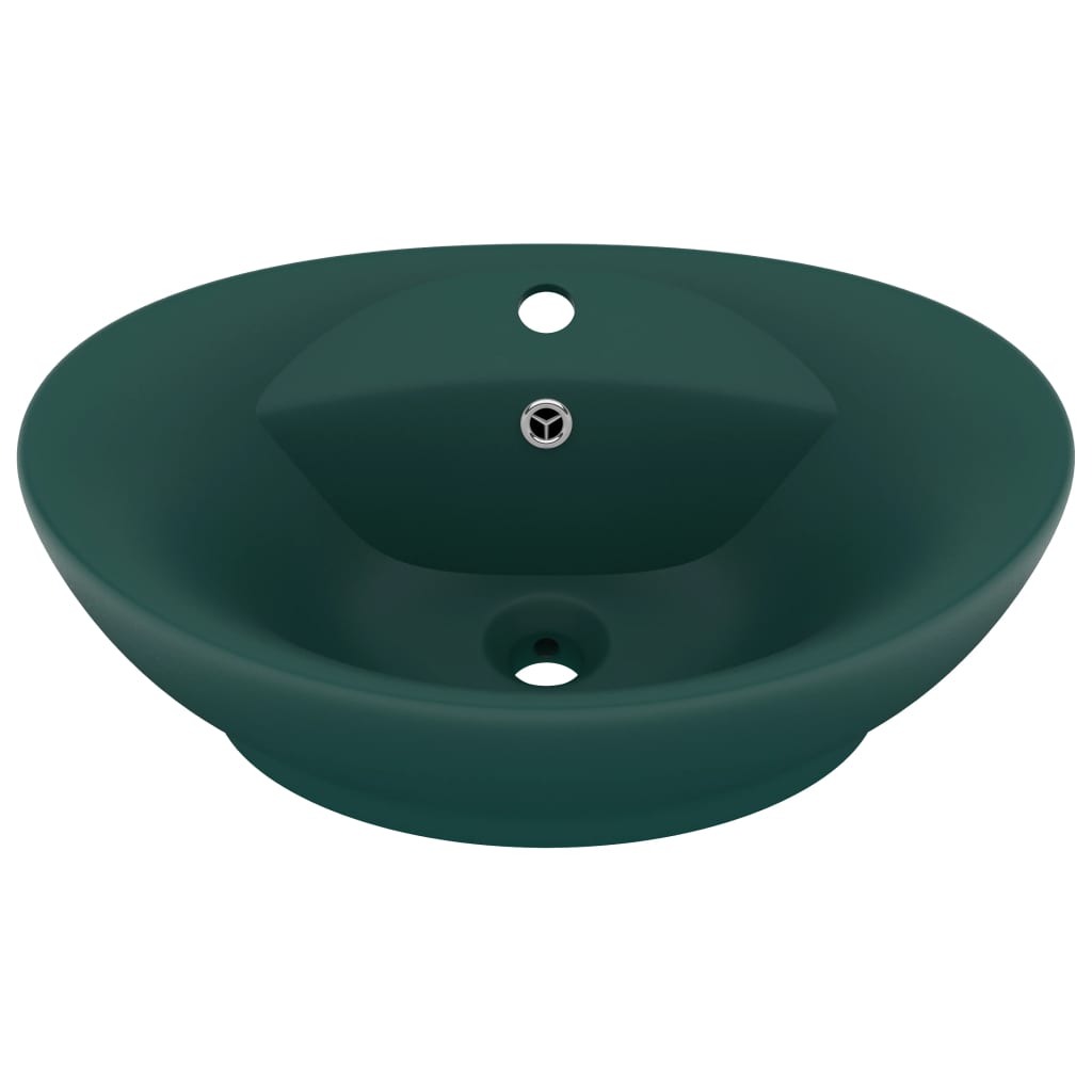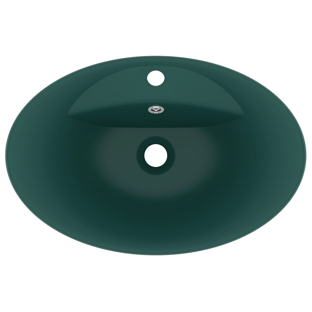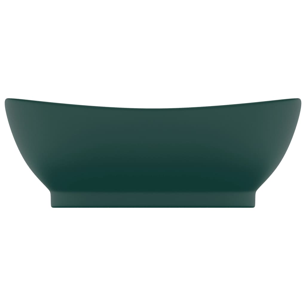 Lavabo ovale à trop-plein vasque à poser de toilette lave-mains de salle de bain salle cosmétique intérieur 58,5 x 39 cm céramique vert foncé mat 02_0002679