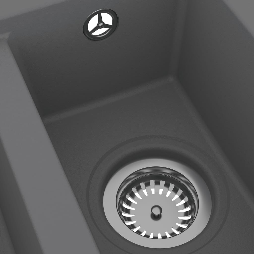Évier de cuisine et deux lavabos trou de trop-plein 58 x 44 cm granit gris 02_0004381