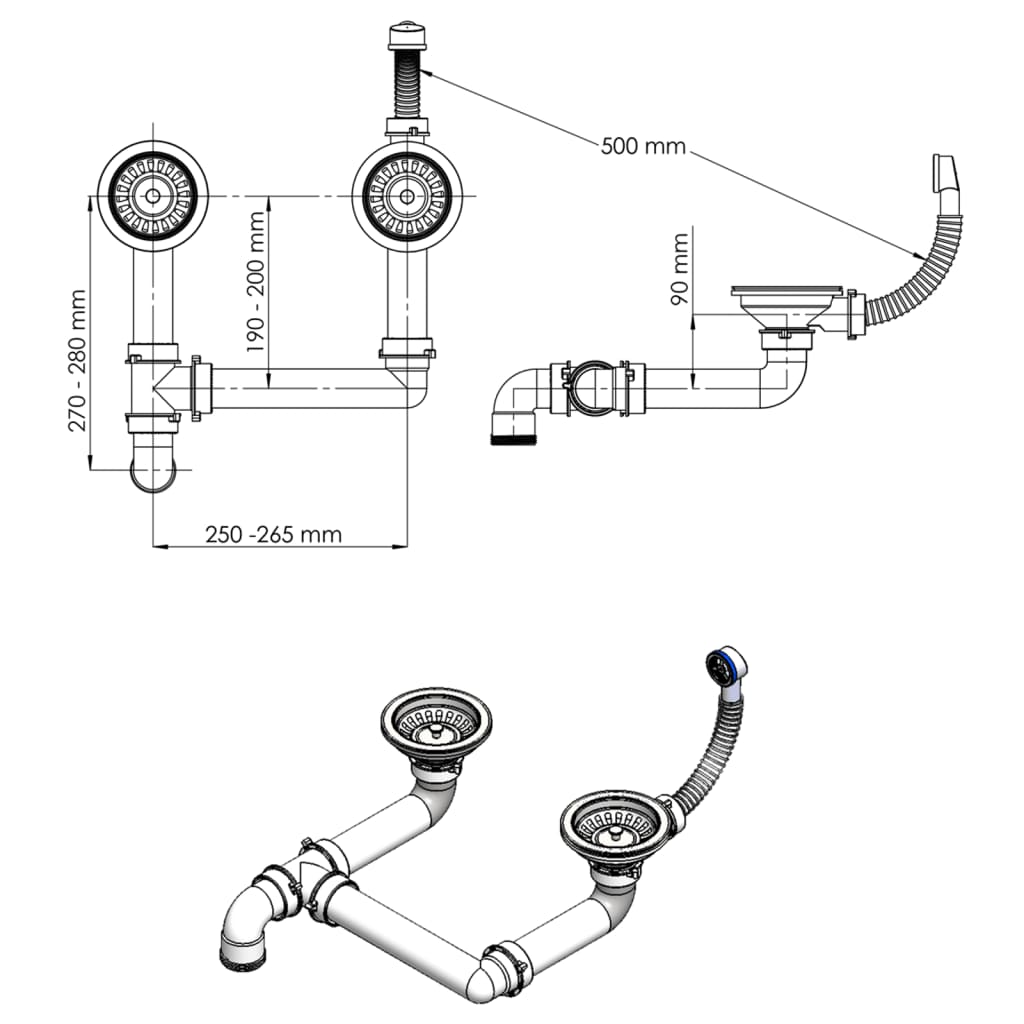 Diamètre du trou de vidange : 90 mm