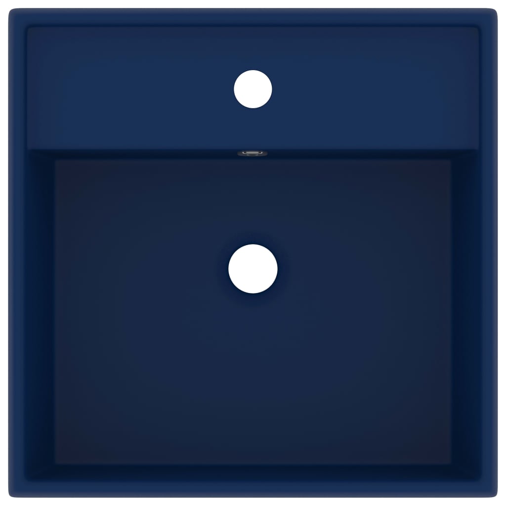 Lavabo carré de luxe à trop-plein vasque à poser de toilette lave-mains de salle de bain salle cosmétique 41 x 41 cm céramique bleu foncé mat 02_0002688