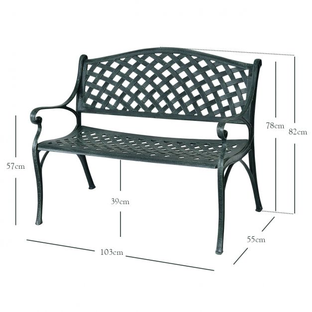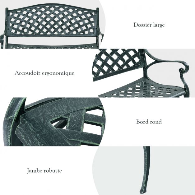 Banc de jardin 2-3 places en fonte d'aluminium avec design ajouré 103 x 64 x 83 cm pour terrasse/cour/balcon/pelouse/parc 20_0004779