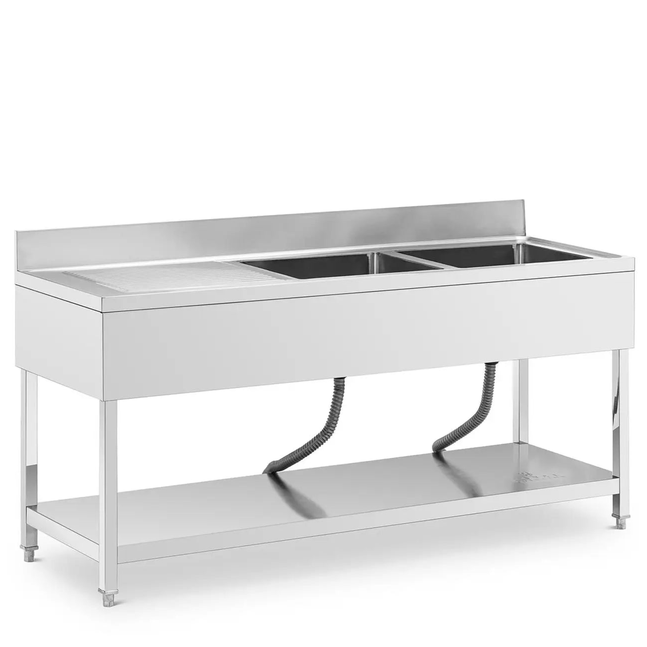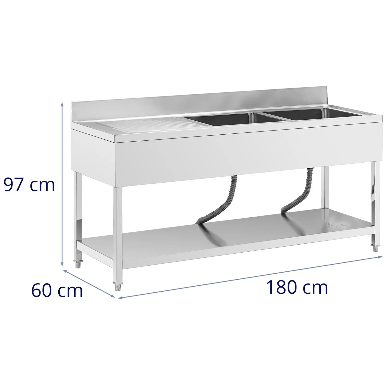 Plonge inox professionnel 2 éviers 180 x 60 x 97 cm acier inoxydable argenté 14_0009567
