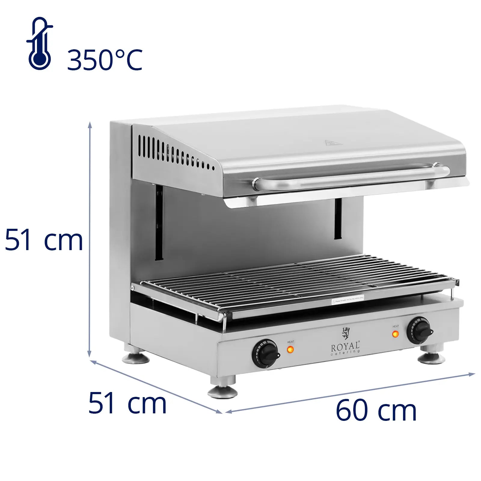 Utilisation rapide – salamandre professionnelle chauffant jusqu'à 350 °C en peu de temps, idéale pour les pitas, gratins et autres plats