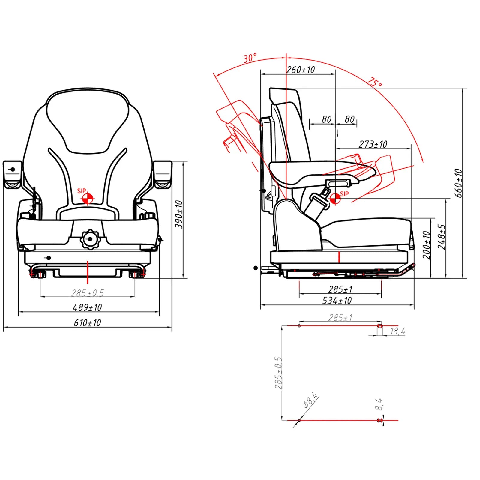 Accessoire universel – siège idéal pour les tracteurs, les tondeuses, les chariots élévateurs, etc. qui sont équipés d’une plaque de montage de 28.5 x (27~)28.5 cm