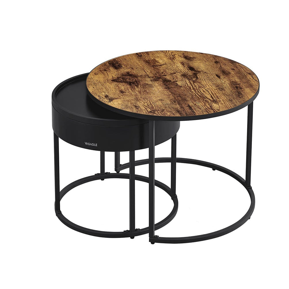 Tables basses lot de 2 tables d’appoint rondes tables gigognes style moderne rangement discret et plateau pour salon chambre balcon marron rustique et noir d'encre 12_0007681