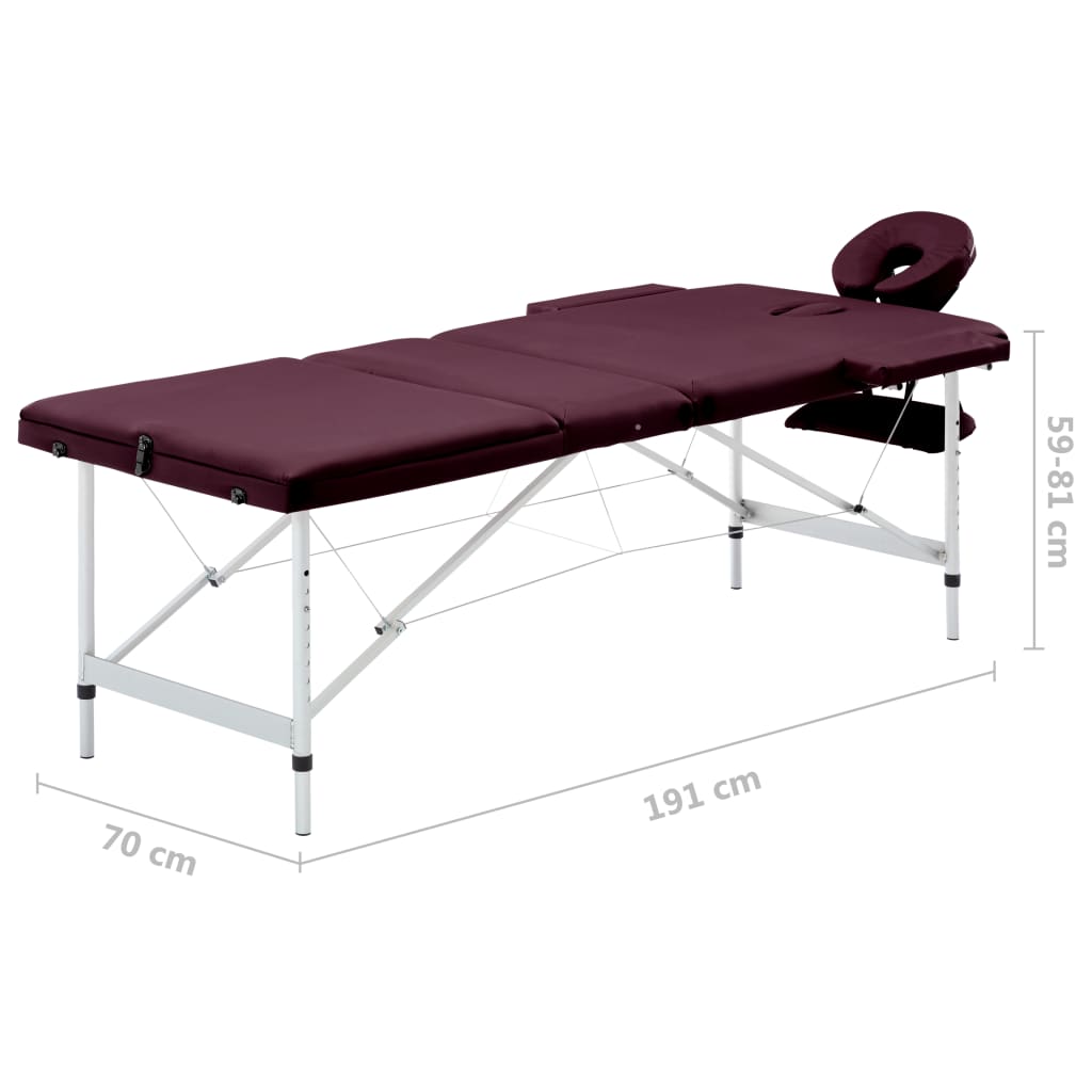 Table de massage pliable lit de massage banc canapé thérapie cosmétique portable professionnel Shiatsu Reiki 3 zones aluminium violet 02_0001829