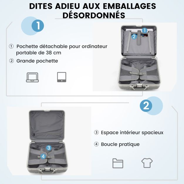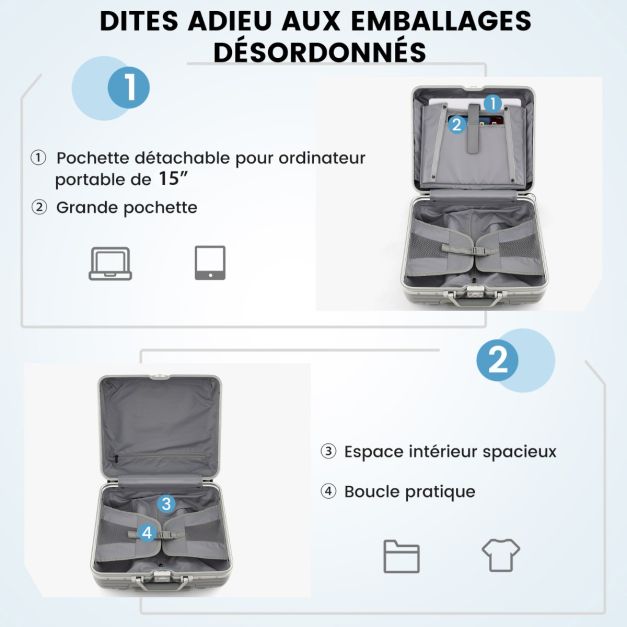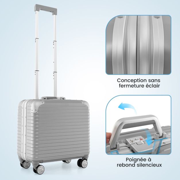 Bagage à main de 16 pouces à coque rigide en pc à roulettes compartiment pour ordinateur portable approuvée par les compagnies aériennes argent 20_0006531