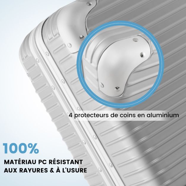 4 protections d'angle en aluminium empêchent la valise d'être endommagée