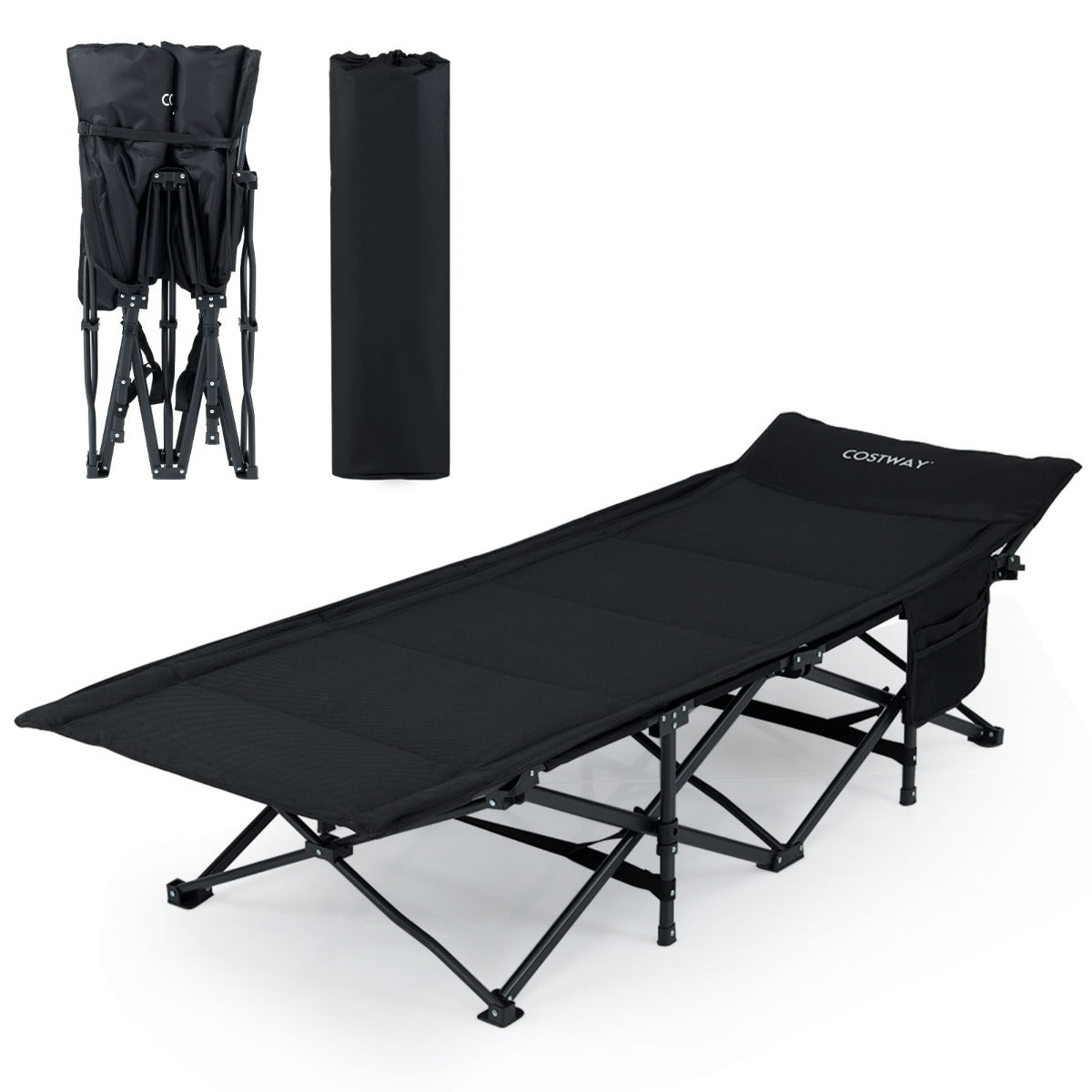 Lit de camping pliant 189 x 69 x 48 cm confortable et pratique pour usage intérieur et extérieur en oxford noir 20_0018057