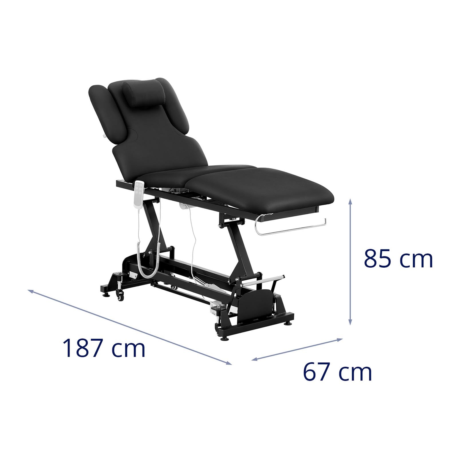 Réglages – hauteur ajustable de 640 - 868 mm et dossier inclinable de 55° à l'aide d'une télécommande pour mieux s'adapter à la clientèle