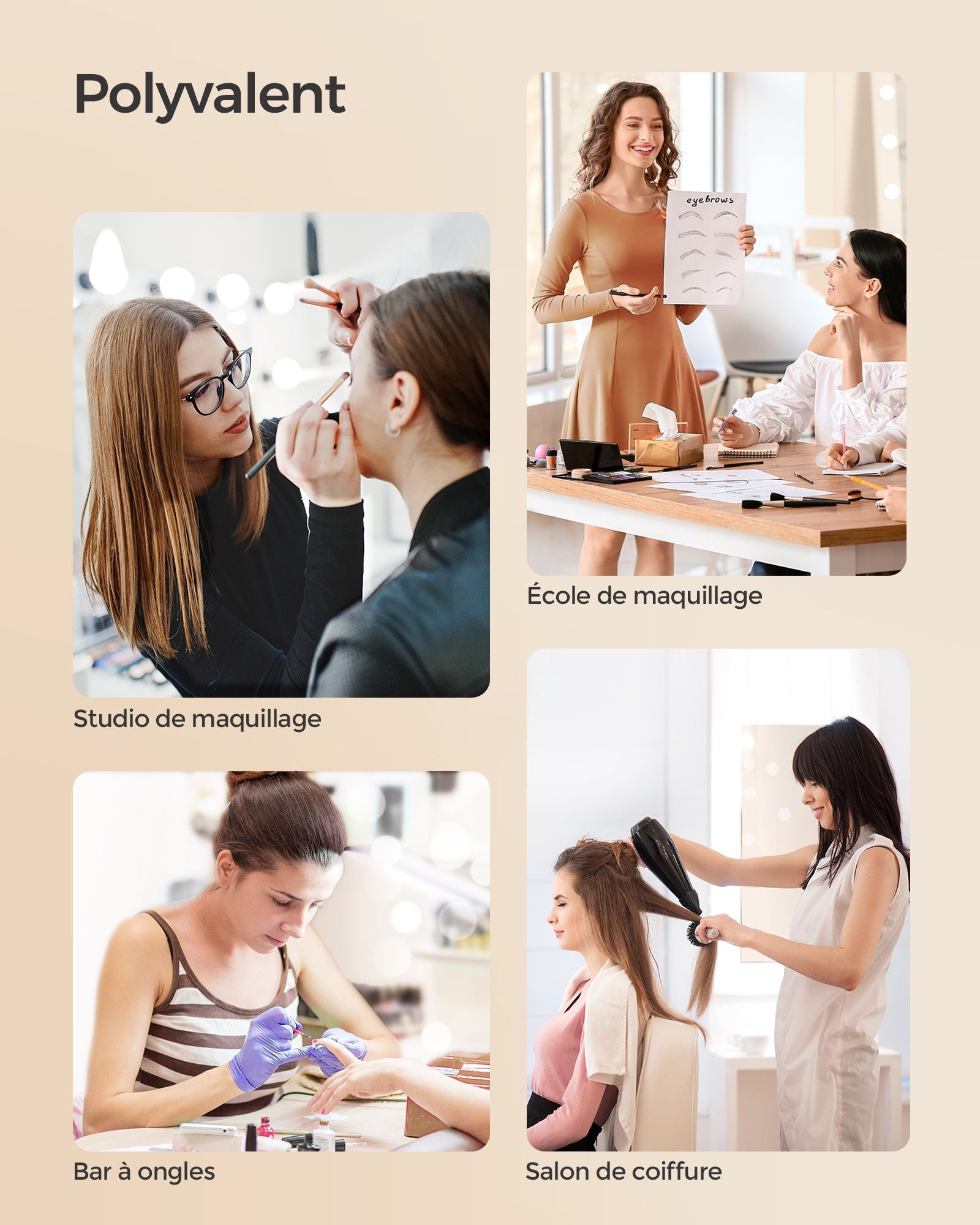 Cette valise de maquillage 4-en-1 est conçue pour ranger et organiser vos produits de beauté de manière efficace. Les trois compartiments supérieurs accueillent parfaitement les petits articles comme les rouges à lèvres, fards ou vernis, tandis que le grand compartiment inférieur offre assez de place pour un sèche-cheveux, une lampe UV ou d’autres accessoires plus volumineux.