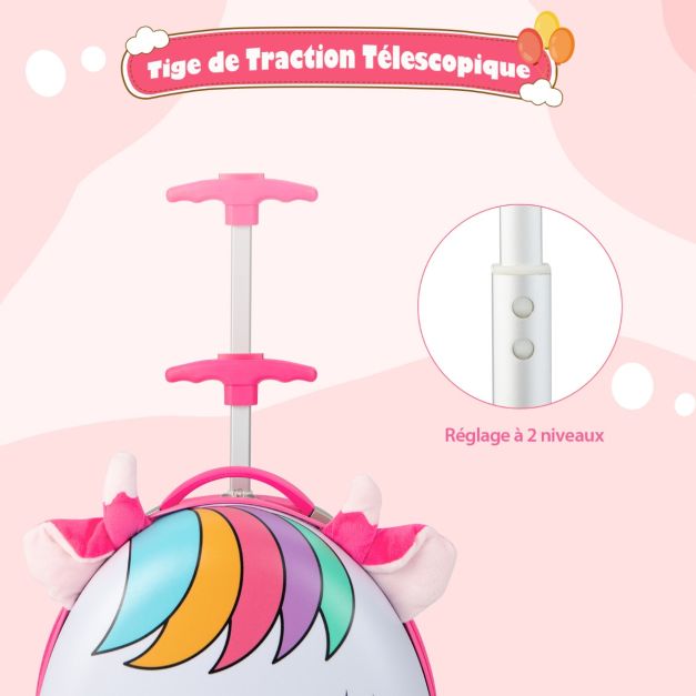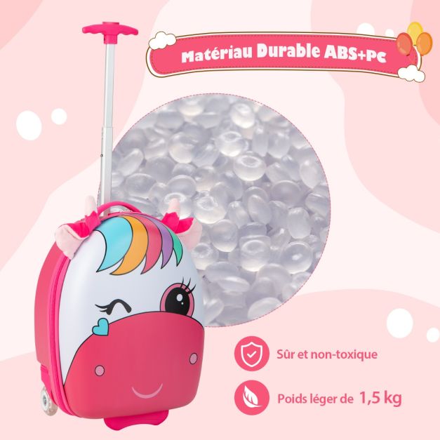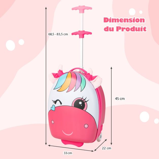 Valise enfants à roulettes 16’’ avec roues lumineuses bagages enfant avec poignée rétractable 68,5-83,5 cm cheval 20_0006435
