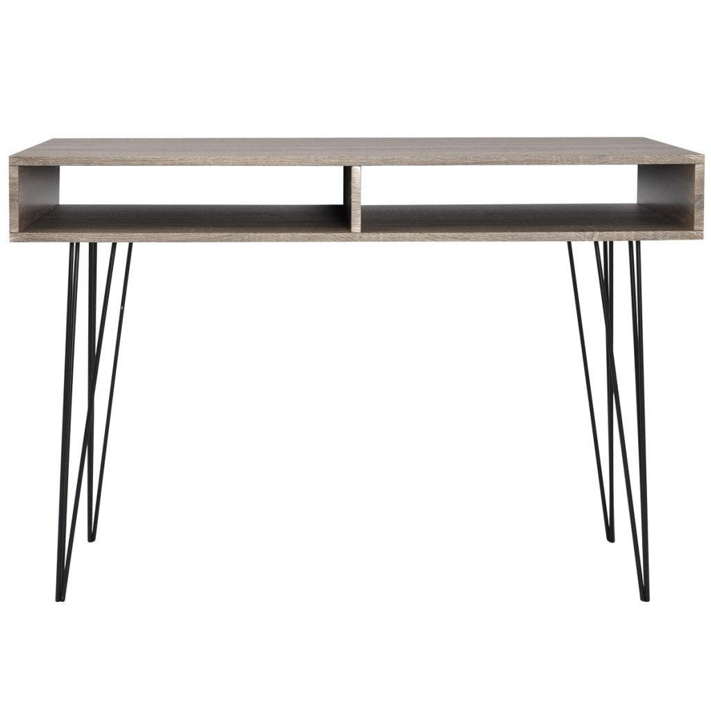 Bureau table meuble travail informatique avec 2 compartiments gris 0502061/2