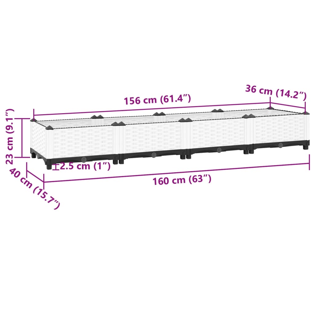 Jardinière bac lit surélevé plantes fleurs terrasse jardin 160 x 40 x 23 cm polypropylène blanc 02_0039212