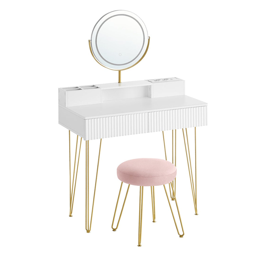 Coiffeuse avec miroir pivotant et tabouret miroir coiffeuse avec éclairage et multiprise tabouret rembourré pour chambre coiffeuse 40 x 80 x 1348 cm blanc mat et doré clair 12_0005163