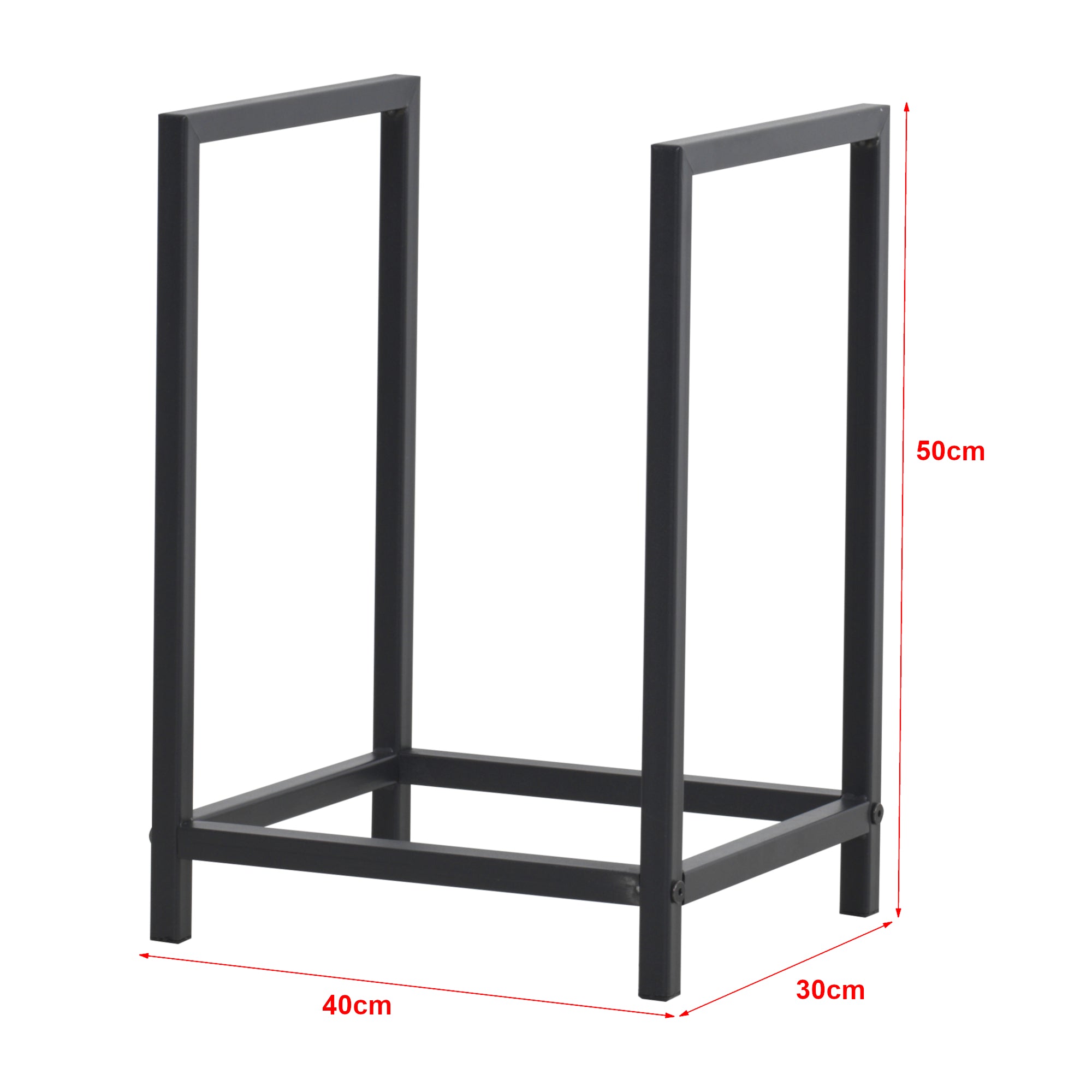 Range-bûches pour usage intérieur extérieur porte-bûches design support rangement bois de chauffage en acier 40 x 30 x 50 cm noir 03_0006295
