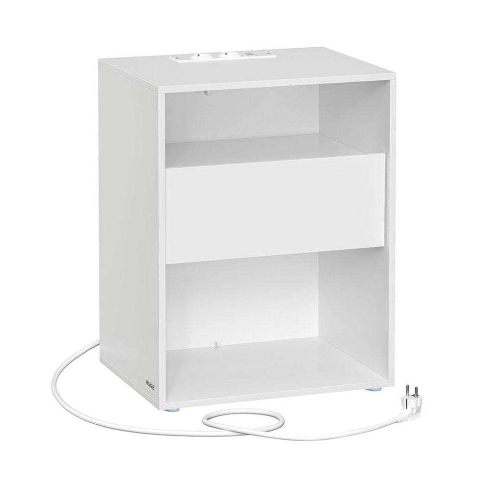Table de chevet assemblage sans outils lot de 2 table d’appoint avec multiprise et tiroir moderne chambre salon blanc 12_0007594