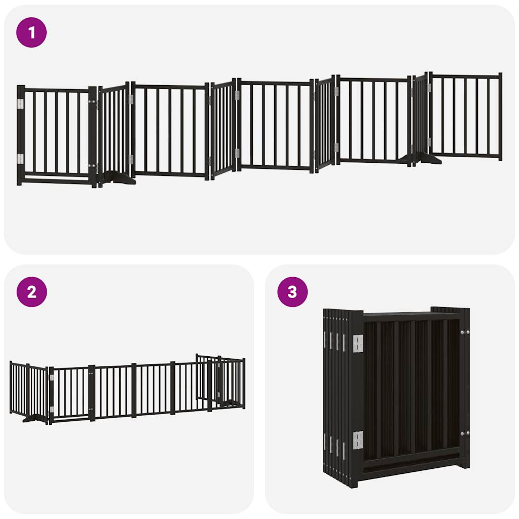 Barrière de sécurité pour chien animaux de compagnie porte pliable 9 panneaux bois peuplier noir 02_0023285