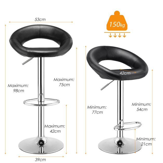 Lot de 2 tabourets de bar modernes réglables en hauteur rotatifs à 360° base antidérapante repose-pieds en métal pour maison restaurant noir 20_0004906