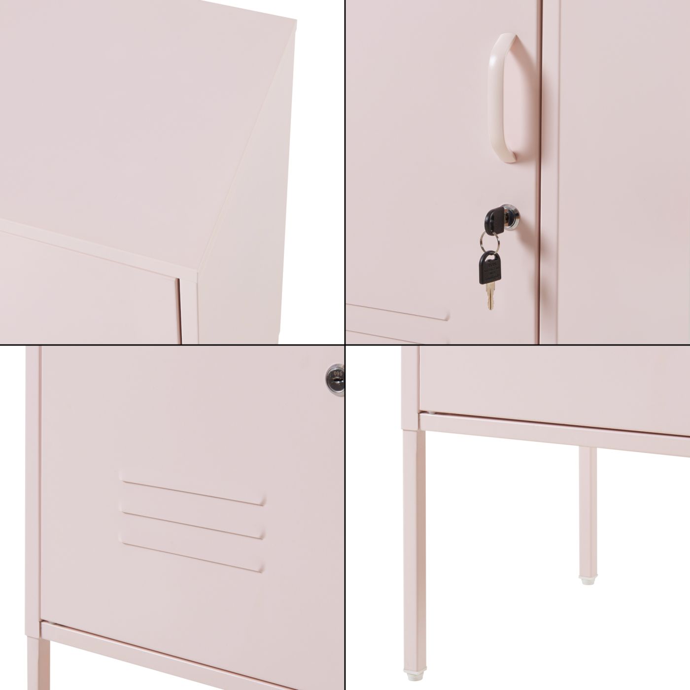 La porte est dotée de fentes d'aération et d'une serrure fiable qui vous permet de conserver vos objets de valeur et vos documents personnels en toute sécurité.