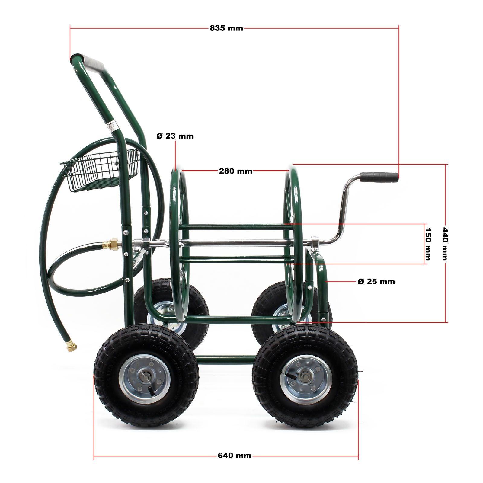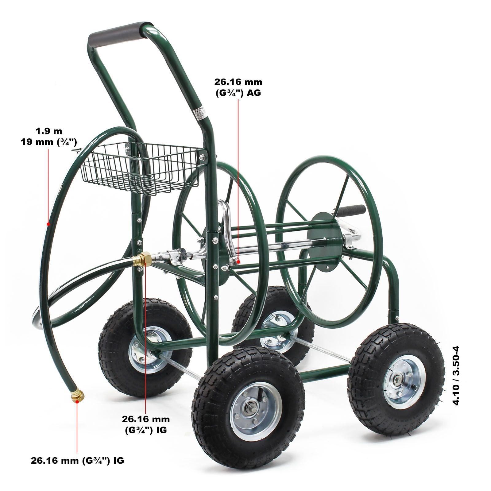 Chariot de tuyau 16mm tuyau d’arrosage 76m raccord de 19mm 4 roues dévidoir 16_0002933