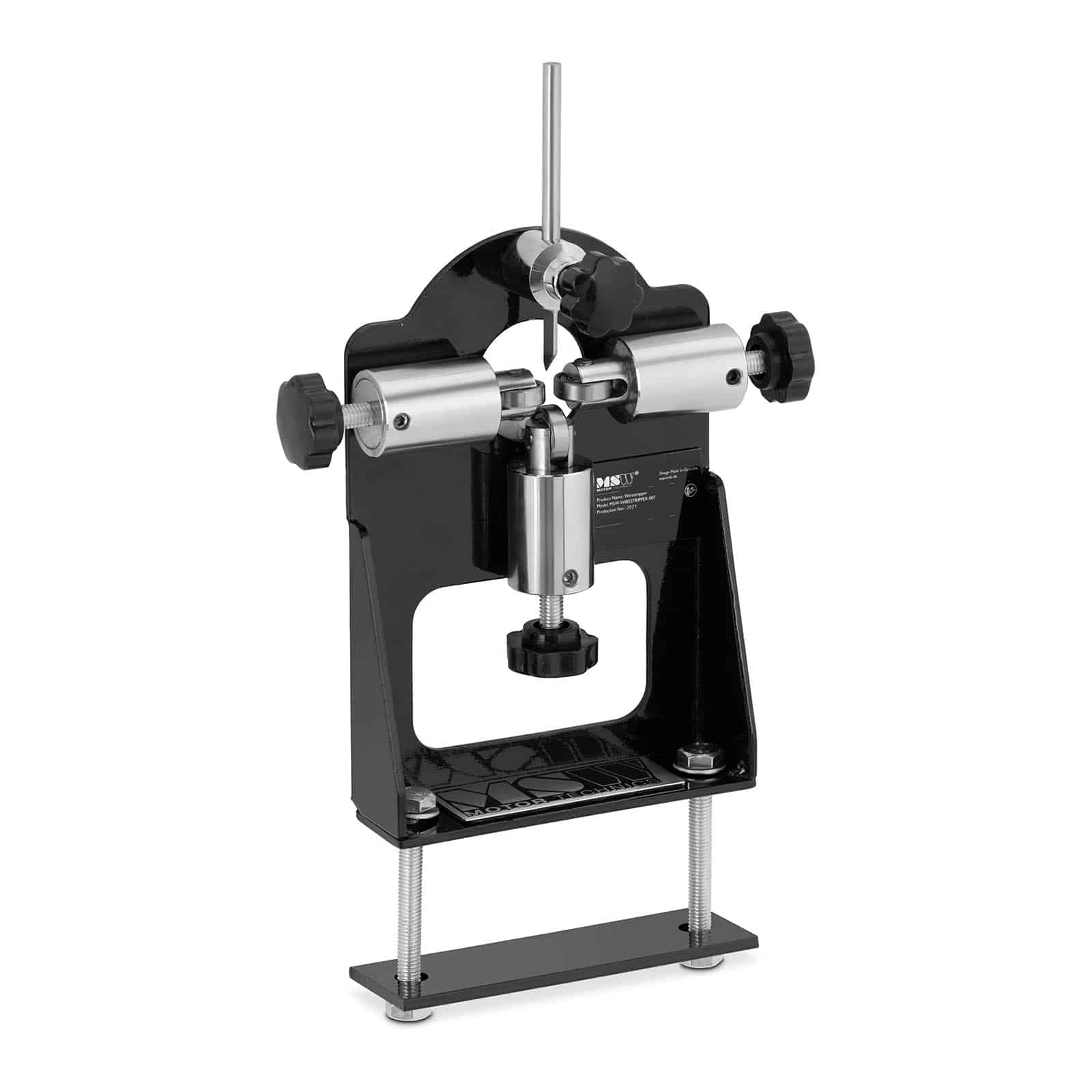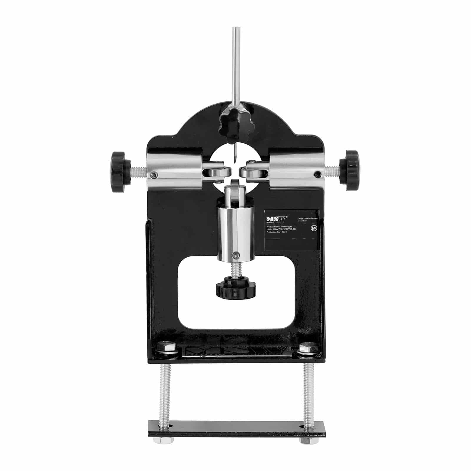 L'appareil est fabriqué en tôle d'acier solide et peut être installé solidement sur le bord d'une table ou d'un plan de travail à l'aide de deux vis.
